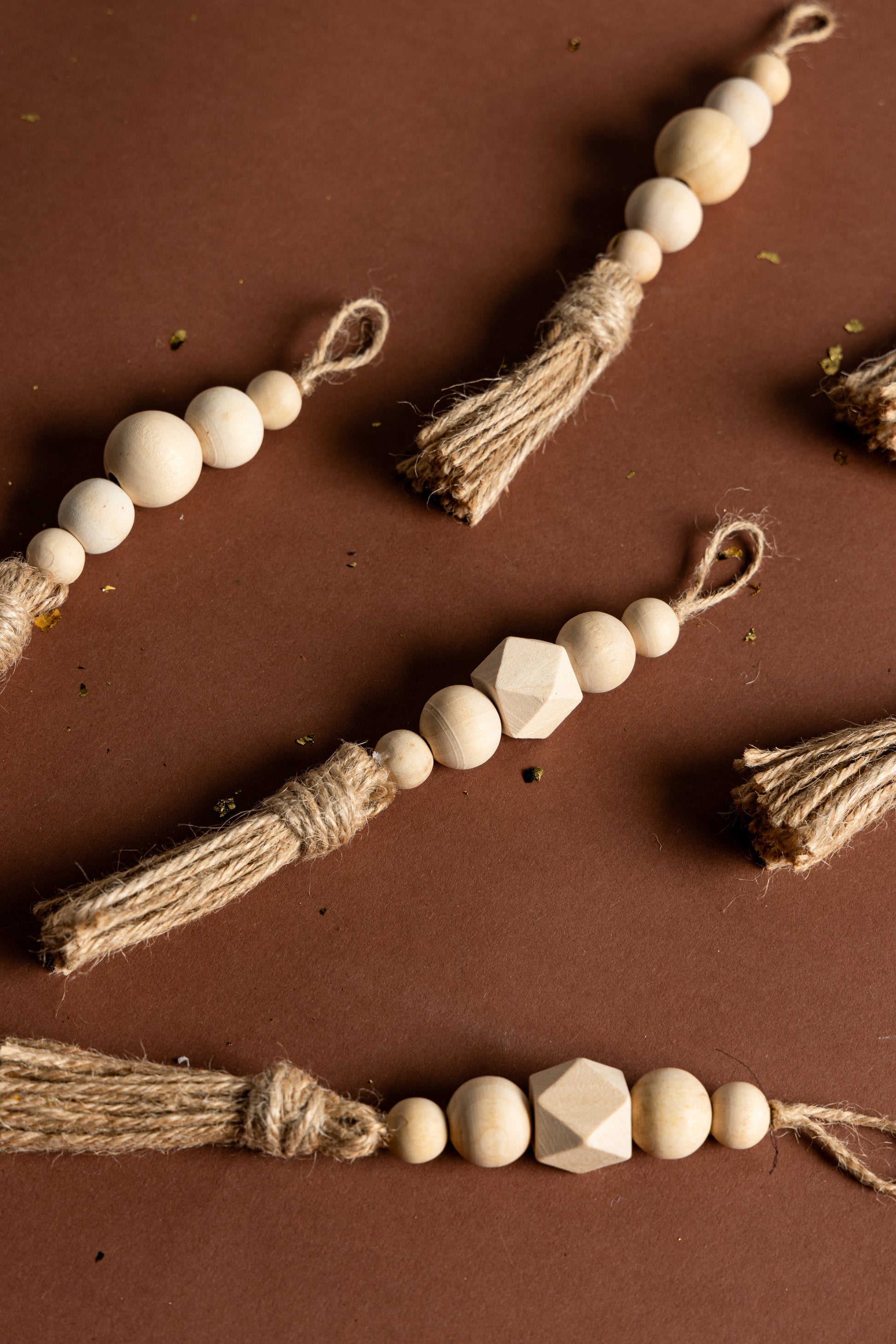 Decorate your tree with style this holiday season! This set of 6 ornaments are made with wood beads and handmade tassels, adding a touch of charm and warmth to your home. Hang them on your tree or use them as charming accents throughout your space.
